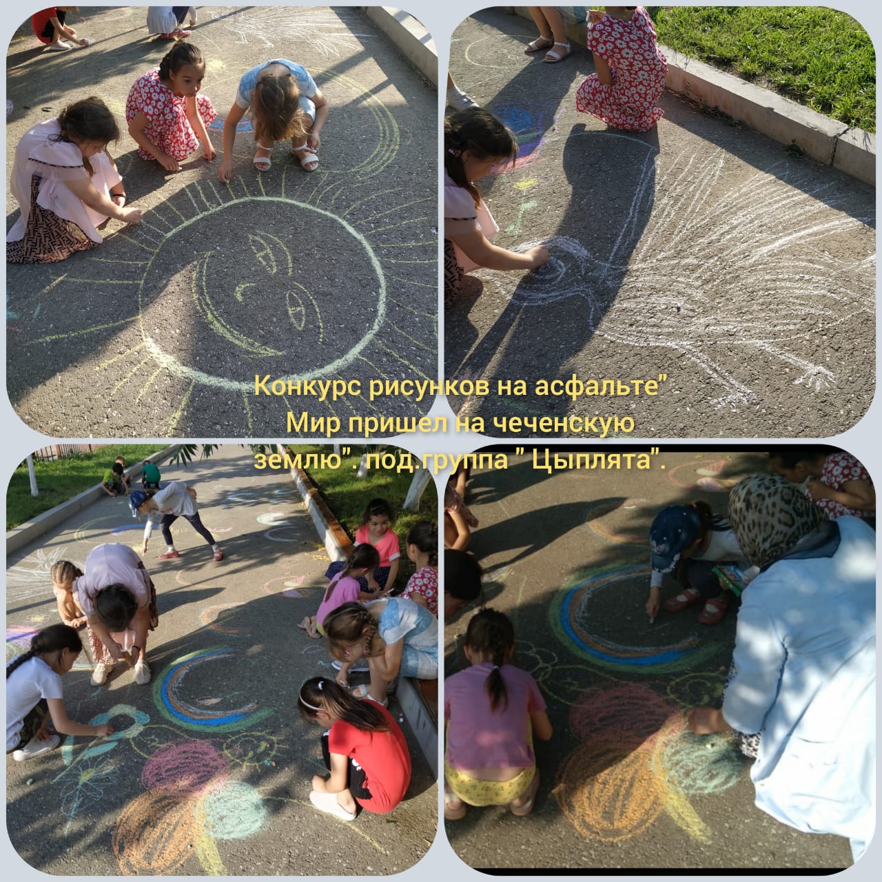 Конкурс рисунков на асфальте "Мир пришел на чеченскую землю" в подготовительной группе "Цыплята"