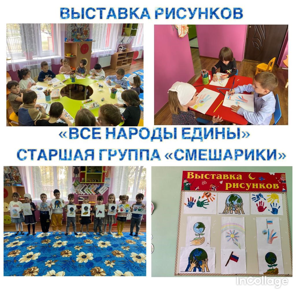 - выставка детских рисунков «Все народы едины». Старшая группа «Смешарики». Воспитатель Хатаева З.М.;